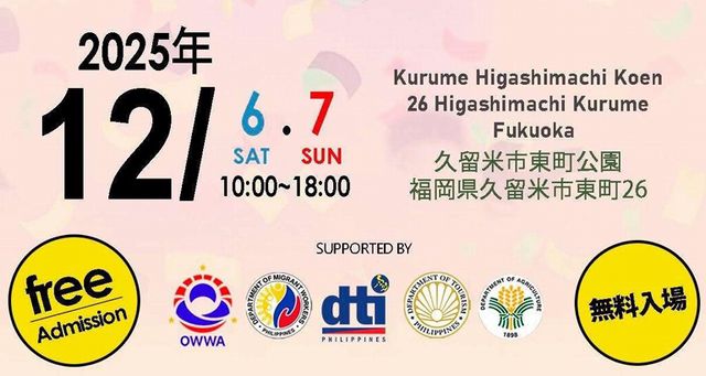 2025年12月6日(土)~12月7日(日)10:00~18:00、久留米市東町公園(久留米市東町26-15)にて「Pistang Pilipino FUKUOKA ピスタンピリピーノ福岡~フィリピンのスポーツ・文化・食の祭典~」が開催されます。