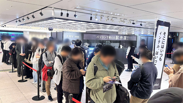 富士通クライアントコンピューティング株式会社は、日々忙しく働くビジネスパーソンが多く集まる東京駅にて、ユニークな体験を提供するイベント「#パソコンで買える駅弁屋さん」を10月29日(水)から31日(金)の3日間限定で開催しました。オープン前から2時間待ちの行列ができ、オープン後も最大3時間20分待ちとなるなど、早々に予定販売数に達する盛況ぶりで好評でした。