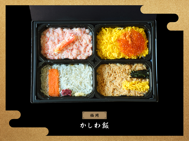 各都市のお弁当は「#パソコンで買える駅弁屋さん」で販売した“元祖FMVentoU”をベースに、大阪のお好み焼き、名古屋の味噌カツ、福岡のかしわ飯など、各都市ならではのグルメを取り入れた“ご当地版FMVentoU”として再開発。