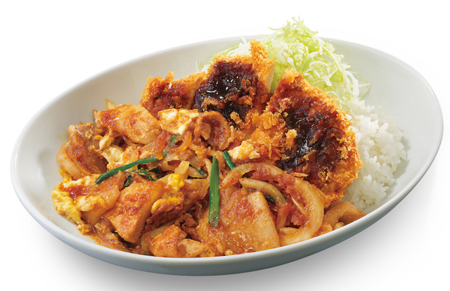 肉たま炒めは、豚肉、玉ねぎ、ニラ、玉子と一緒に甘辛い焼肉タレで炒め、ご飯が進む濃厚な味わいに仕上げています。かつや定番のロースカツの上に盛り付けた肉たま炒めをご飯と一緒に食べる、肉好きのための豪快な一皿です。