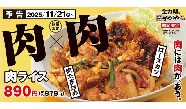 アークランドサービスホールディングス株式会社の⼦会社、とんかつ専⾨店「かつや」を展開している株式会社かつやは、国内「かつや」にて10万食限定の「肉ライス」を2025年11月21日(金)より期間限定で販売開始。