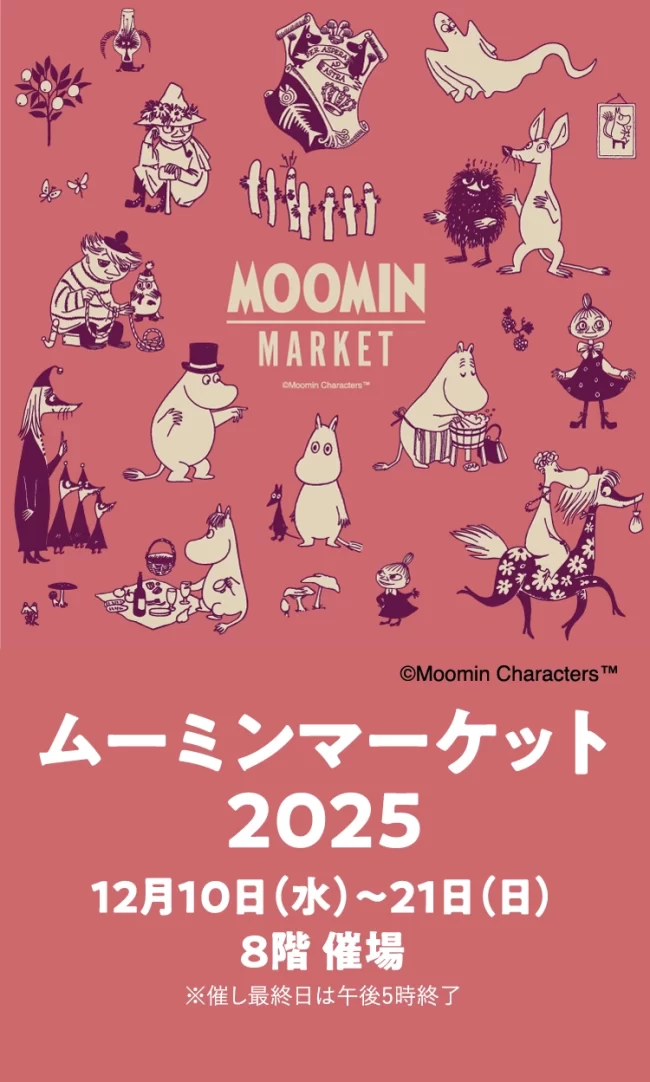2025年12月10日(水)~12月21日(日)10:00~20:00(最終日は午後5時終了)、博多阪急(福岡市博多区博多駅中央街1-1)8階 催場にて「ムーミンマーケット2025」が開催されます。