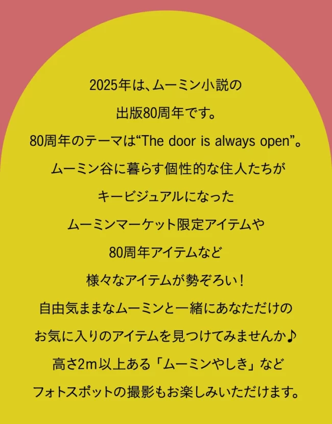 2025年は、ムーミン小説の出版80周年です。80周年のテーマは、“The door is always open”。