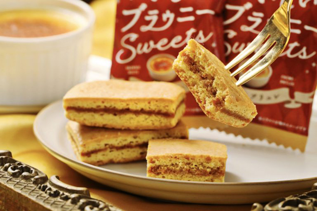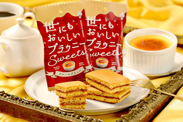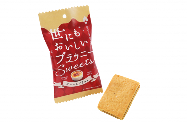 「世にもおいしいチョコブラウニー」シリーズ初の“クレームブリュレ”をイメージした新フレーバー。まろやかなカスタード風味のブラウニー生地に香ばしいカラメルをサンドし、人気スイーツ“クレームブリュレ”の味わいを再現。