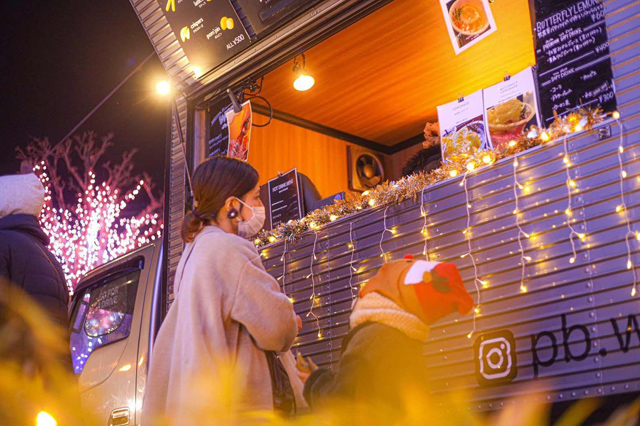 2025年の今年で6回目を迎える直方クリスマスマーケット。スイーツやパン、ピザ、から揚げなど、おいしくて温かいグルメの出店はもちろん、かわいいハンドメイド雑貨やステージパフォーマンスも盛りだくさん。