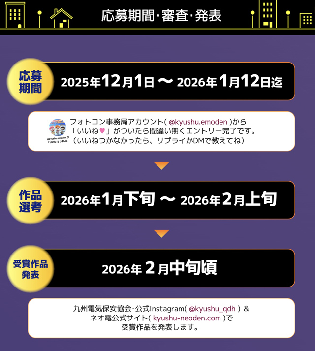 2025年12⽉1⽇(⽉)〜2026年1⽉12⽇(⽉・祝)の期間、⼀般財団法⼈九州電気保安協会によるインスタグラムを活⽤したフォトコンテスト「第1回ネオ電フォトコンテスト2025」が開催されます。