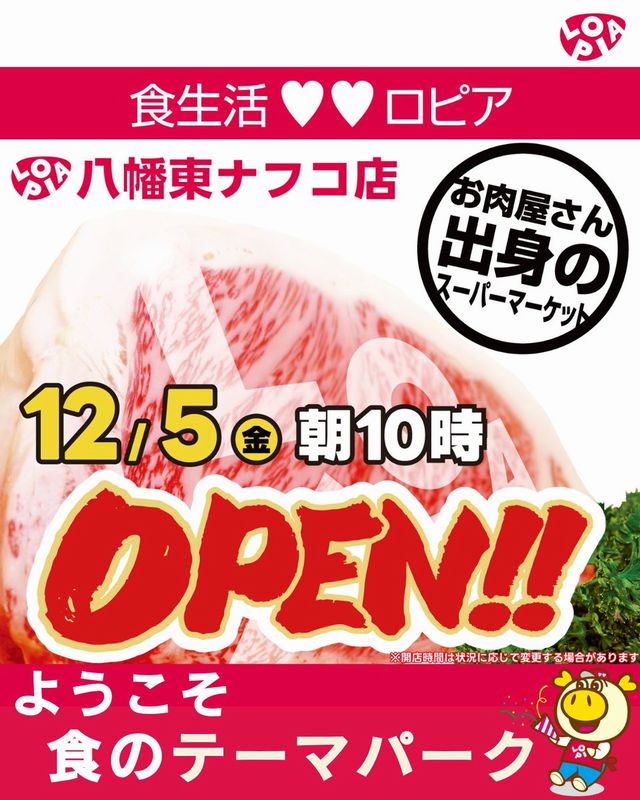 「食生活♥♥(ラブラブ)ロピア」を運営する株式会社OICグループ(オイシーグループ)は、2025年12月5日(金)、北九州市にあるホームプラザナフコ 八幡東店内に「ロピア 八幡東ナフコ店」をオープンします。営業時間 は10:00~20:00。