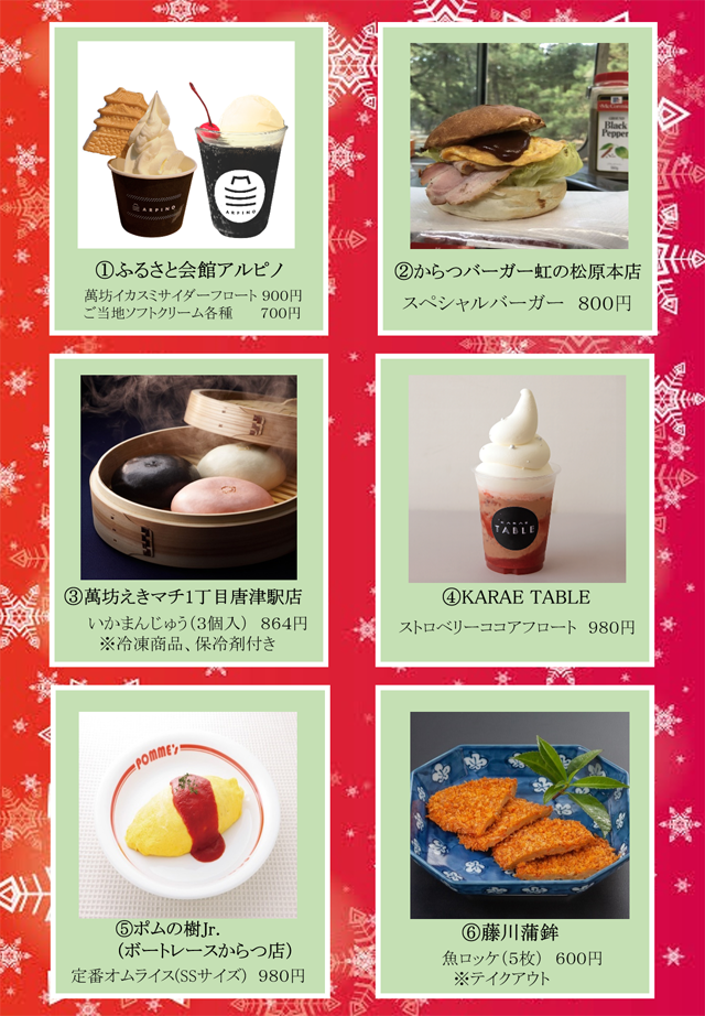 ふるさと会館アルピノを中心に対象店舗で特典付きメニュー(有料)を注文、または指定スポットを訪れると、本イベントでしか手に入らないコラボ限定の「観光カード」がもらえます。