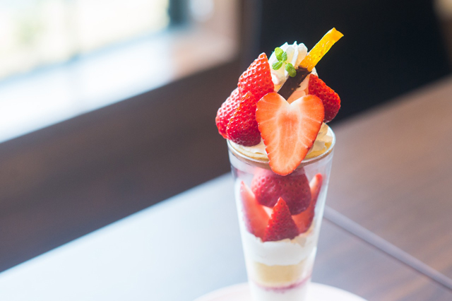 完熟に実ったいちごをその場で収穫して食べ放題!果樹園に併設のカフェでは、いちごやその他旬のフルーツを使ったパフェやタルト、新鮮な地元野菜を使ったランチも楽しめます。