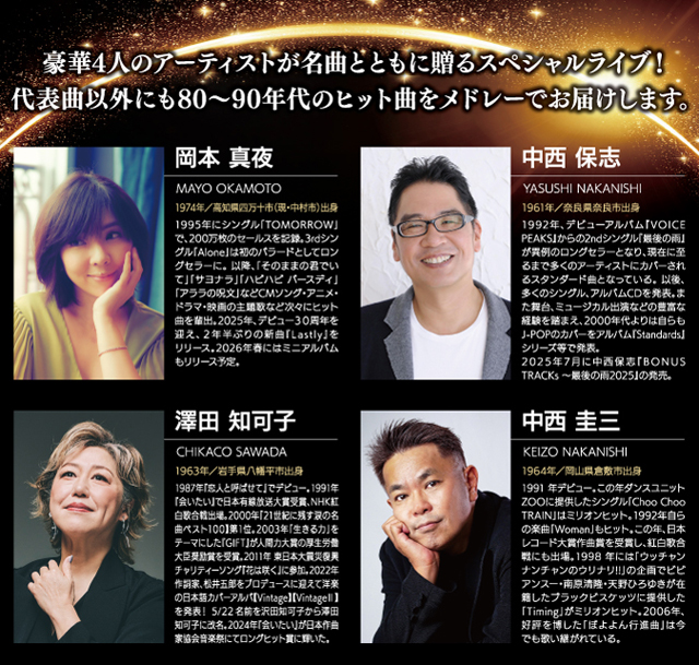 出演者:岡本真夜、中西保志、澤田知可子、中西圭三