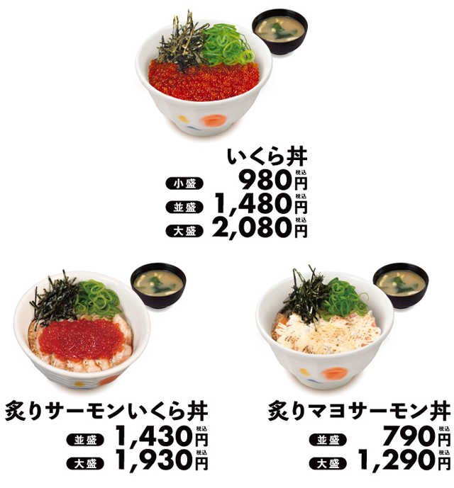 そして、今年は新たに「炙りサーモンいくら丼」「炙りマヨサーモン丼」が登場。サーモンのとろっとした食感に、香ばしい炙りの風味が調和するたまらない味わいです。いくらとのスペシャルコラボも用意し、贅沢な一杯に仕上げました。