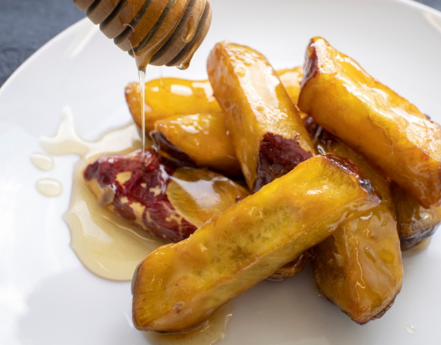 厳選された国産の芋を使用した、新食感の芋スイーツ。カリカリのさつまいもに、はちみつをたっぷり絡めた「はちみつポテト」。ほっと一息入れたいときにぴったりのおやつです。