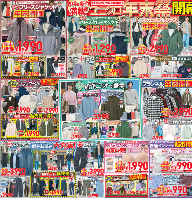 2025年12月19日(金)~12月31日(水)UNIQLO(ユニクロ)では毎年恒例のお得なイベント「ユニクロ年末祭」を開催。