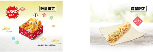 この時期だけの特別メニュー「えびぷりぷりフライ」は、サクッとした衣とぷりっとした食感が楽しめる逸品。別添の特製タルタルソースとの相性も抜群です。さらに、セットやパックと一緒に購入すると、1ピース270円でいくつでもおトクに購入できます。