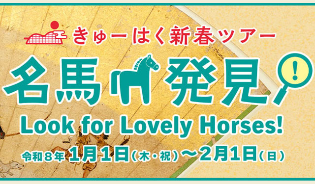 2026年1月1日(木・祝)~2月1日(日)9:30~17:00(入館は16:30まで)、九州国立博物館(太宰府市石坂4-7-2)4F 文化交流展示室にて「きゅーはく新春ツアー 名馬発見!」が開催されます。月曜日は定休日。