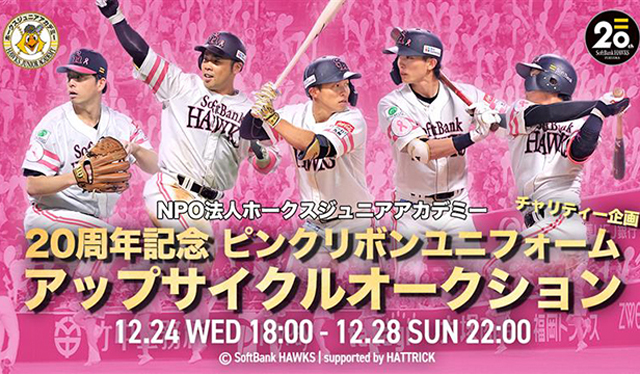 NPO法人ホークスジュニアアカデミーでは、年間を通じてチャリティーオークションを実施中です。今回は、2025年12月24日(水)18:00~12月28日(日)22:00に開催。