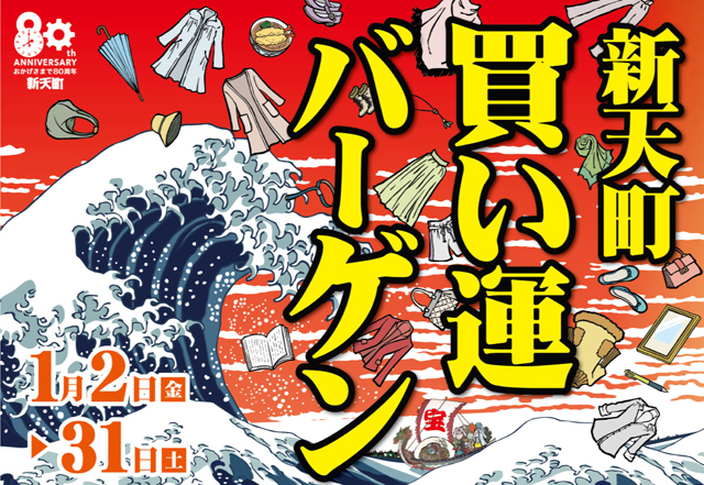 2026年1月31日(土)までの期間、天神の新天町(福岡市中央区天神2丁目9番)にて「新天町買い運バーゲン」が開催されています。最大50%OFFの割引商品もあり!グルメも盛りだくさん!