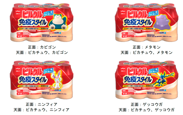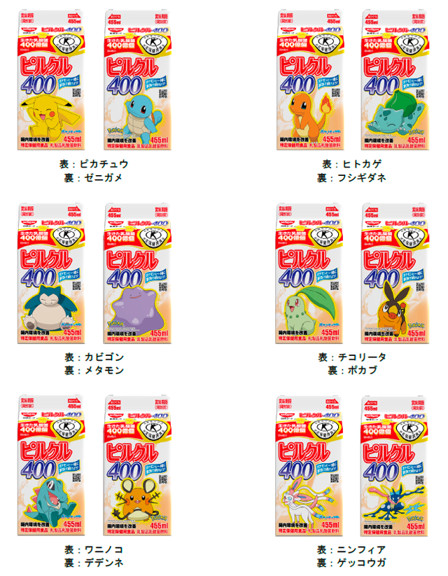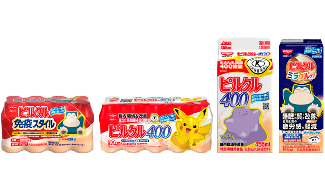酢酸菌GK-1による「健康な人の免疫機能の維持に役立つ」機能を持つ「ピルクル 免疫スタイル」(機能性表示食品) を初めて “ポケモンパッケージ” で発売します。また、「ピルクル400」(特定保健用食品)、「ピルクル ミラクルケア」(機能性表示食品)も限定パッケージで展開します。