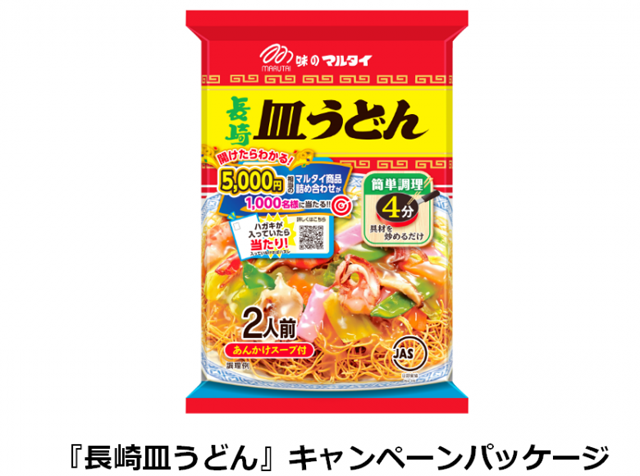 『長崎皿うどん』にハガキが入っていたら当たり!キャンペーン期間中は、商品を開ける際のどきどき感も楽しめます。マルタイづくしの生活を送りたい方、応募をお待ちしております!