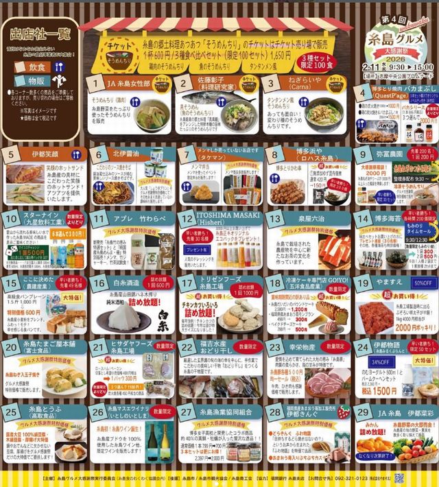 毎年大盛況の「糸島グルメ大感謝祭」。あっという間に完売してしまう企業や、長蛇の列を作る企業も。糸島の食品工場直売、超お買い得イベントです。今年は29社が集結します。