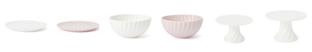 2サイズ展開の、ケーキスタンドです。リムにはケーキのホイップを思わせる装飾を施し、やわらかな質感を演出。手作りスイーツや市販のケーキを飾るだけで、甘く上品な印象に仕上がります。2段に重ねて使えるため、テーブルコーディネートの幅が広がります。