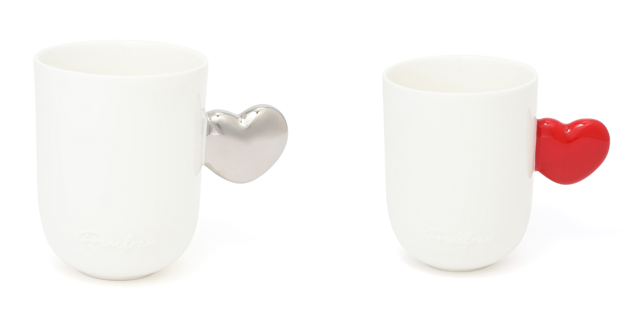 本体がハート型で、コロンとしたフォルムが特徴のマグです。飲むとハートが口元にくるデザインで、向かいに座る人にも可愛らしさが伝わる、バレンタインパーティーにぴったりのアイテム。特徴的なデザインなので自分用にはもちろん、贈り物としても喜ばれます。
