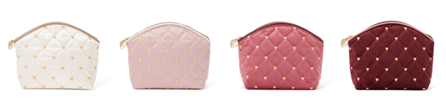 格子とハートのステッチ刺繍をほどこしたデザインのポーチです。たくさんのコスメを収納できる大容量のLサイズで、持ち運びにも便利。長時間のおでかけや、ちょっとした旅行にもぴったりのアイテムです。