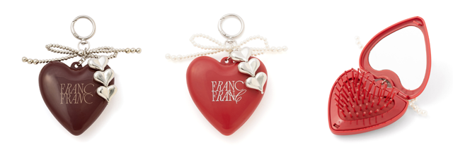 キャッチーなハートモチーフがかわいい、バレンタイン限定カラーのチャーム付き ミラー&ブラシです。甘くなりすぎないよう、トレンド感のあるロゴやチャームをあしらい、大人かわいい雰囲気に仕上げました。カラビナ付きでチャームとしてバッグに付けられるだけでなく、開くとミラーとブラシがセットされているので、外出先でメイク直しやヘアセットに便利です。