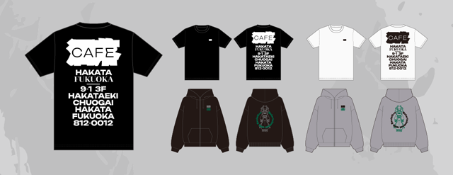博多マルイ店のオープンを記念し、ブランドの世界観を身にまとうアパレルラインが始動します。洒落(博多ver)のおりT作ったよTシャツは新ロゴを手掛けたNKCN氏、オリジナルパーカーは独創的な世界観で支持を集めるイラストレーター/グラフィックデザイナーとして活動するスドウ創太氏(X@sota_96)がそれぞれ制作を担当。両アイテムは店頭での販売も行い、カフェの枠を超えたストリートカルチャーを提案します。