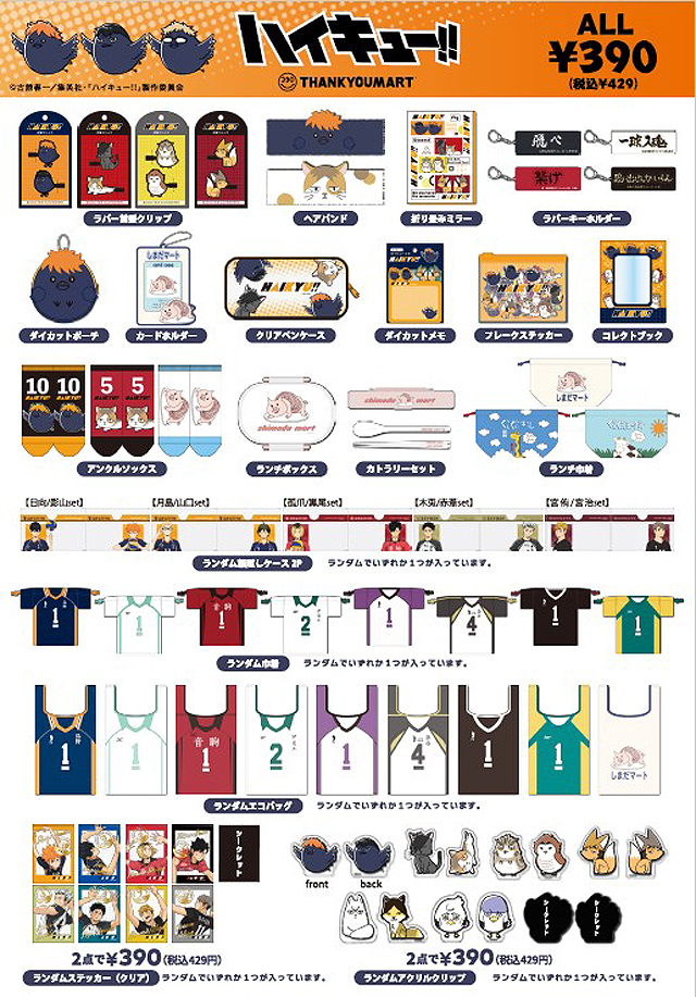 完売続出の人気シリーズ、アニメ「ハイキュー!!」より、全品390円(税込429円)の限定アイテムがサンキューマートに登場!