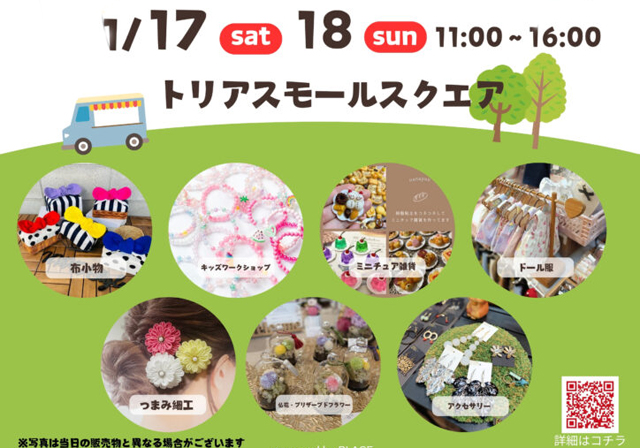 2026年1月17日(土)~1月18日(日)11:00~16:00、トリアスモールスクエア(糟屋郡久山町山田1111)にて「ひさやまマルシェ inトリアス」が開催されます。