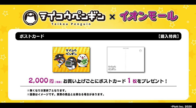 2026年1月23日(金)~2月1日(日)10:00~21:00、イオンモール福岡(糟屋郡粕屋町大字酒殿字老ノ木192-1)2階 レモニカ横スペース、イオンモール八幡東(北九州市八幡東区東田3丁目2-102)3階 イオン直営店前にて「テイコウペンギンPOP UP STORE in イオンモール」が開催されます。