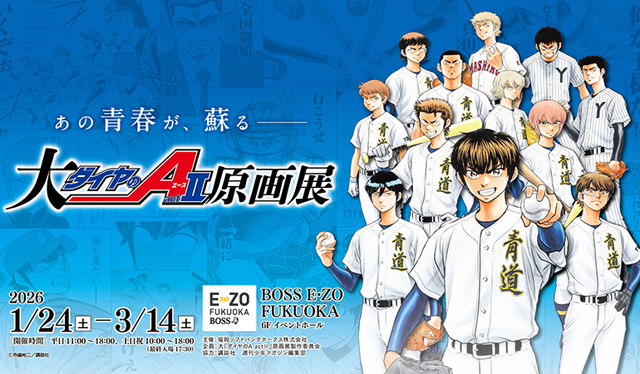 シリーズ連載20周年を記念し「大『ダイヤのA actⅡ』原画展」が2026年1月24日(土)からBOSS E・ZO FUKUOKA 6Fイベントホールにて開催されます。福岡展では限定のグルメやイベントが盛りだくさん!福岡初登場の商品も!