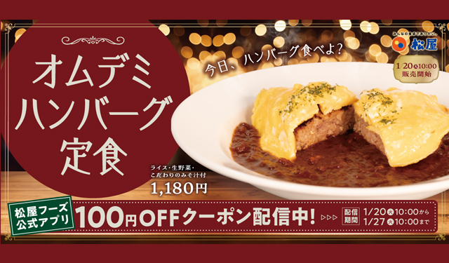 松屋フーズでは、牛めし・カレー・定食・その他丼の「松屋」において、2026年1月20日(火)から「オムデミハンバーグ定食」を全国にて販売開始します。
