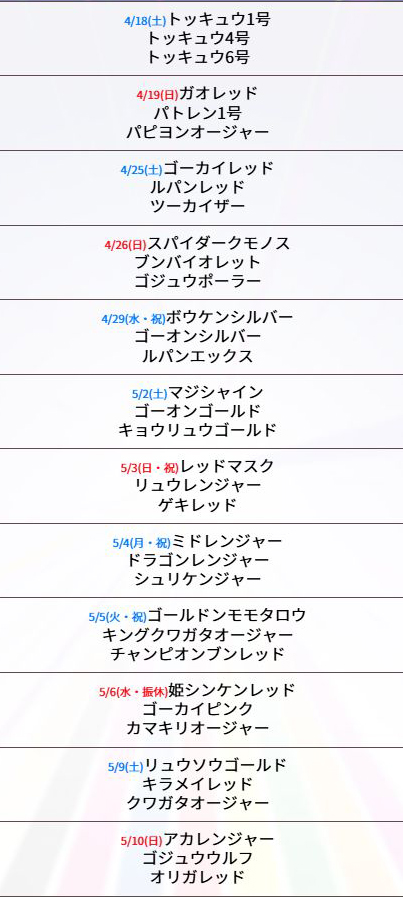 全スーパー戦隊展福岡会場ドリームグリーティングスケジュール
