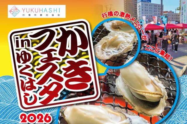 2026年2月1日(日)11:00~17:00(売り切れ次第終了)、JR行橋駅前西口広場(行橋市西宮市2-1-1)にて、「かきフェスタ in ゆくはし2026」が開催されます。今が旬の“豊前海一粒かき”を堪能しよう!