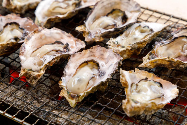 行橋の冬の味覚といえば、牡蠣。豊前海の豊富なミネラルがたっぷりとつまった、プルンとした食感と濃厚な風味が特長の「豊前海一粒かき」を堪能してください。焼き牡蠣のほか、より工夫をこらせたレシピで牡蠣を販売します。