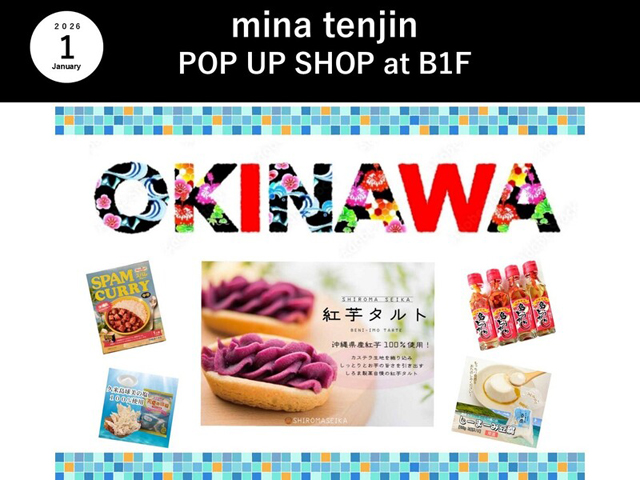 2026年1月24日(土)~2月1日(日)ミーナ天神(福岡市中央区天神4丁目3番8号)B1F 北側エスカレーターホールにて、『沖縄物産展』が開催されます。