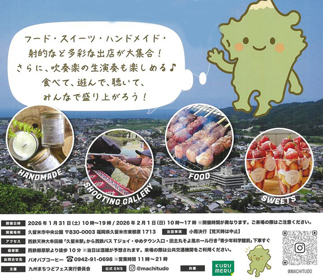 2026年1月31日(土)10:00~19:00、2月1日(日)10:00~17:00、中央公園(久留米市東櫛原町1713)にて「九州まちつどフェス2026」が開催されます。