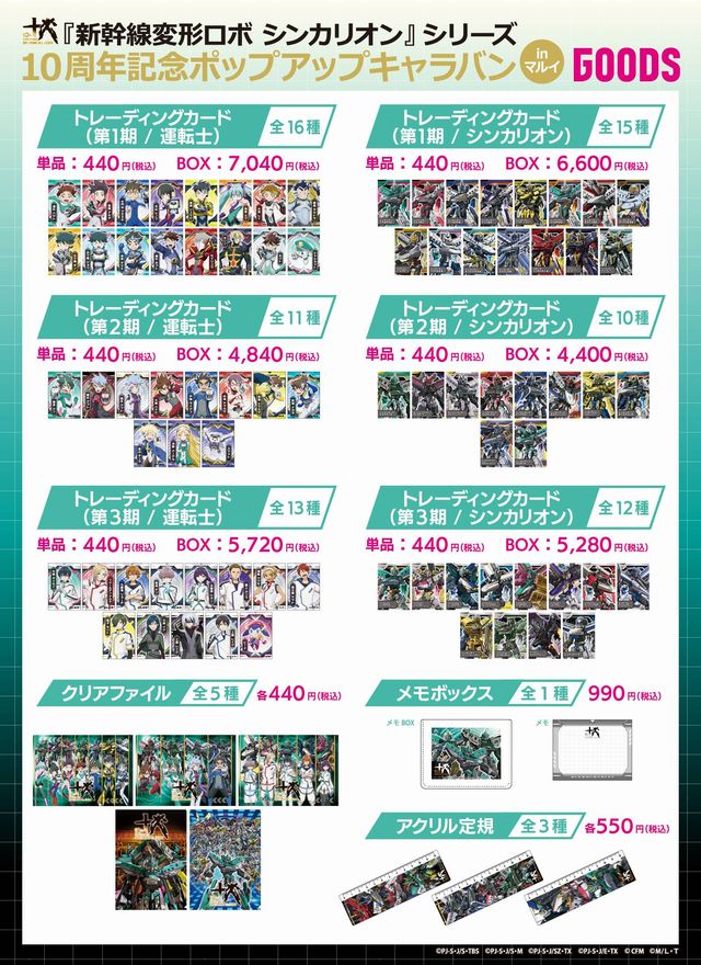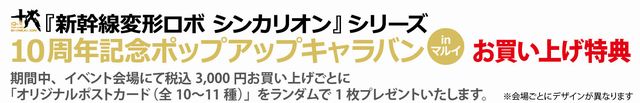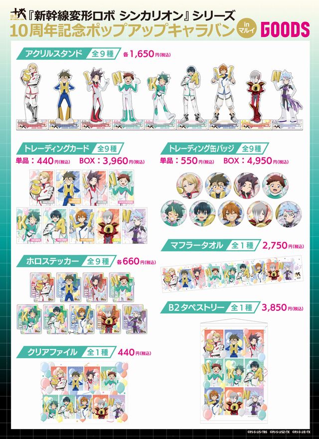 『新幹線変形ロボ シンカリオン』シリーズ10周年を記念したポップアップキャラバン。9人の歴代運転士の記念描き下ろしイラストを使用した新規グッズやキャラクターパネルの展示、『シンカリオン』シリーズのイラストを使用した新規グッズの販売も予定。