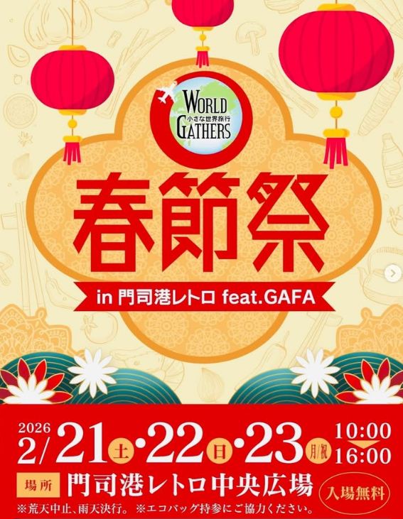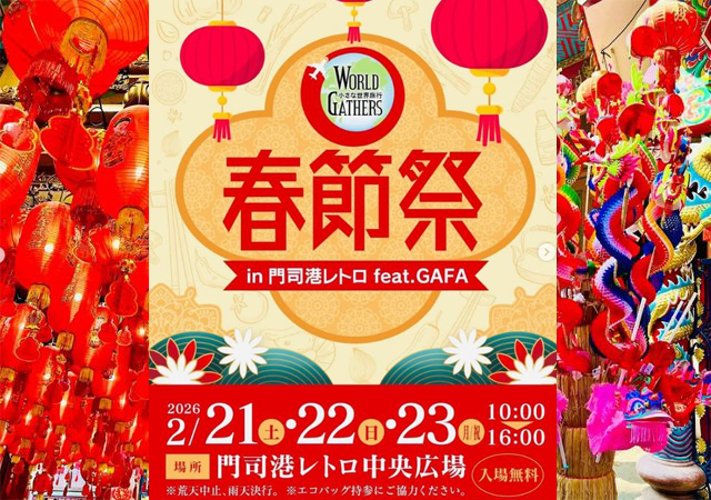 2026年2月21日(土)~2月23日(月・祝)10:00~16:00、門司港レトロ中央広場(北九州市門司区東港町1-12)にて「春節祭 in 門司港レトロ feat.GAFA」が開催されます。