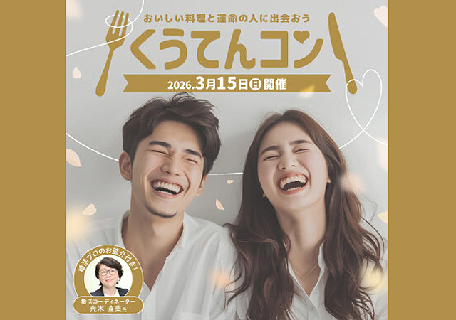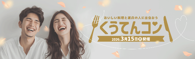 くうてんの美味しい料理と運命の人に出会える「くうてんコン」。昨年に続き、今年も開催が決定。今年のくうてんコンは、JR九州ホール ホワイエにて開催!「くうてんコン」で新たな出会いを見つけてくうてんで、初デートはいかがですか?
