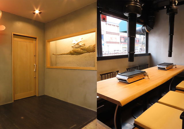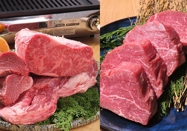 中でも一押しは自社熟成の「ヒレ肉ステーキ」と、博多らしく香味野菜を巻いて食べる「巻き焼肉」。店内にはテーブル席・掘りごたつ・半個室を完備。火入れは肉に精通したスタッフが行います。