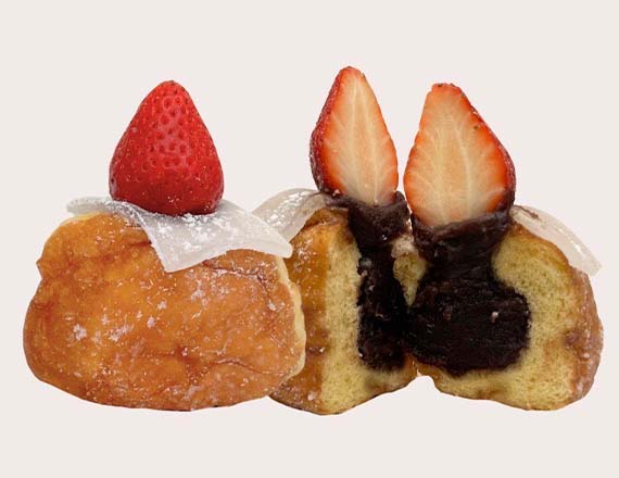 しっとりふわふわ新感覚な生ドーナツ専門店。自慢のドーナツ生地に合わせるのはしっとりな甘さのあんこと求肥、一粒あまおう。期間限定商品です。