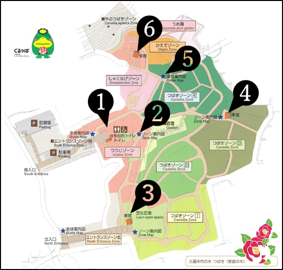 久留米つばき園内に配置されたクイズを解き、ウェブ上で解答してください。