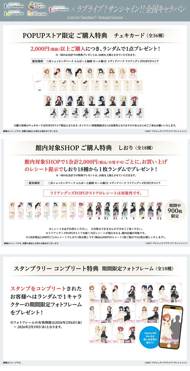 2026年2月/6日(金)~2月19日(木)10:00~21:00、ららぽーと福岡(福岡市博多区那珂6丁目23-1)1階メディアパークにて「ラブライブ!サンシャイン!! × 三井ショッピングパーク ららぽーと福岡 リリアングッズPOPUPストア」が開催されます。