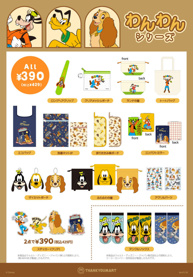 「グーフィー」「プルート」『わんわん物語』の限定アイテムがサンキューマートに新登場!ディズニーより大人気の「グーフィー」「プルート」『わんわん物語』をフィーチャーした、限定アイテム!