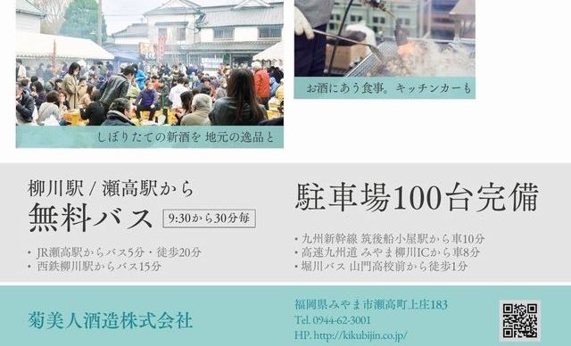 2026年3月14日(土)~3月15日(日)10:00~16:00、菊美人酒造(みやま市瀬高町上庄183)にて「酒蔵びらき」が開催されます。