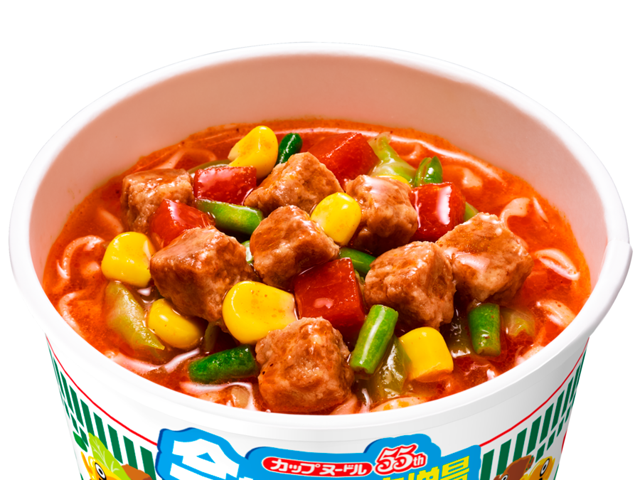 「カップヌードル」が発売55周年を迎えるにあたり、人気具材の “謎肉” と “カニカマ” を増量した「カップヌードル 今だけ謎肉・カニカマ増量」4品を期間限定で発売。