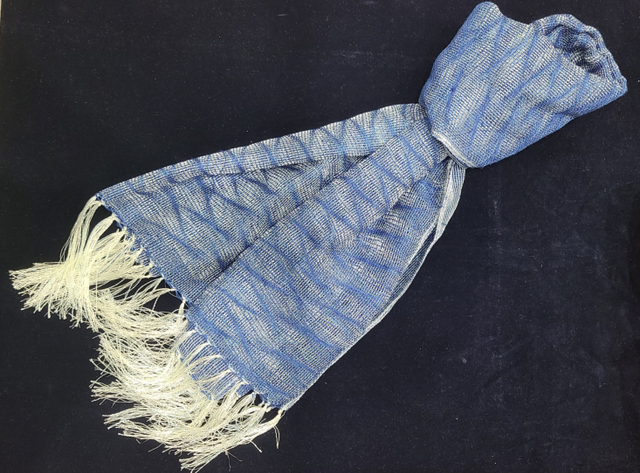 博多の伝統技法の波柄を生糸と真綿絹で織り上げた柔らかいシルクストールです。